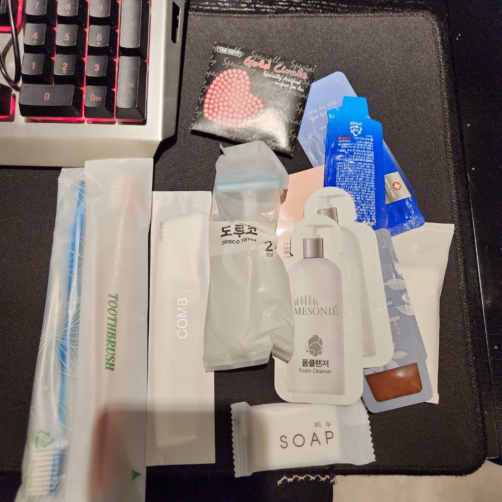 이런 것도 준다 ㅋㅋ 진짜 모텔이네 ㅋㅋ 머리 끈 없었는데 머리끈까지 있어서 그건 좋네,,,